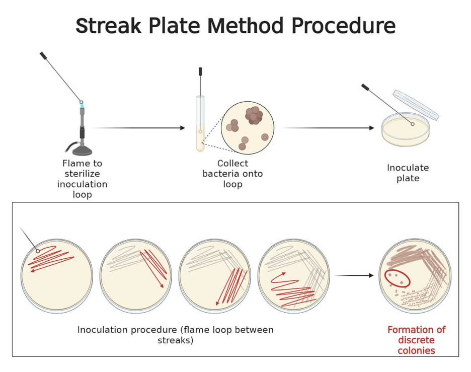 The streak plate method is the most widely used technique for the isolation of bacteria in microbiology laboratories. Bacteria in natural samples usually occur as mixed populations. This method helps in separating individual bacterial cells on the surface of a solid culture medium so that they grow into well-isolated colonies, each derived from a single bacterial cell.